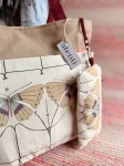 * Detachable Zipper Pouch: A coordinating pouch (7.5"x4"), perfect for small notions, is attached inside with a lobster clip. This clip can also be used to hang your keys or other small accessories.